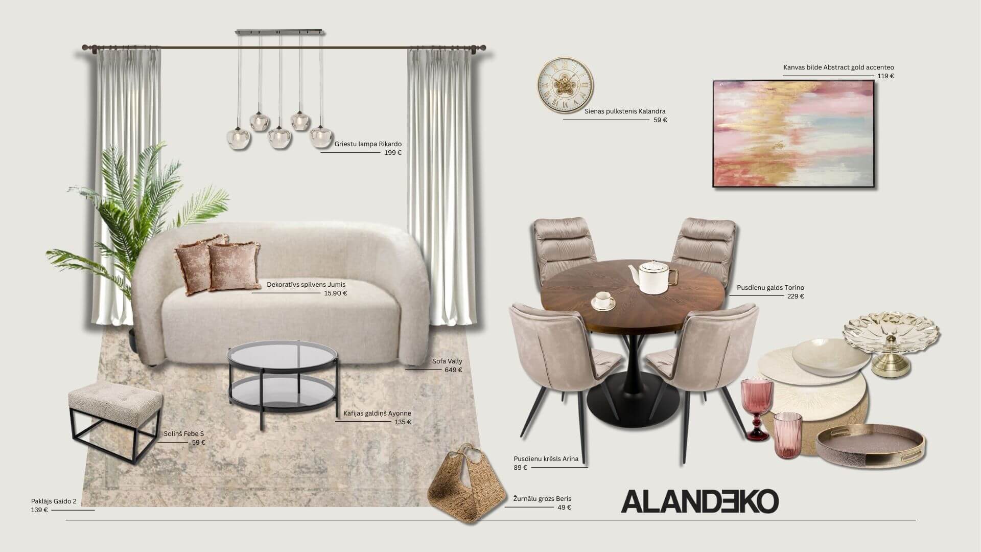Noskaņu kolāža (mood board) palīdz ieraudzīt virzienu, iepirkumu saraksts palīdz pieņemt lēmumus, bet ALANDEKO palīdz nonākt līdz gatavam mājoklim bez lieka haosa.